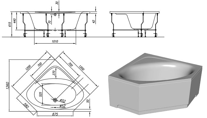Ванна Kolpa San Evelin 120x120 - материал ванны акрил, ванна элитного дизайна углового или встраиваемого монтажа, инсталлируется на ножки или каркасную систему, в зависимости от способа установки. Острые углы дизайна ванны подчеркивают интерьер помещения. Ванна обладает объемом в 165 литров и габаритными размерами 120x120 см и глубиной в 44 см. Максимальная высота ванны на каркасе или ножек 61,5 см.