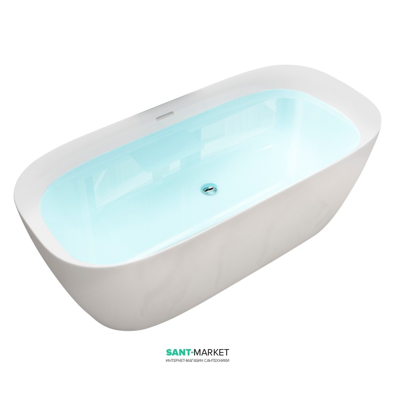 Ванна акриловая Volle 170х80 прямоугольная с сифоном click-clack белый матовый