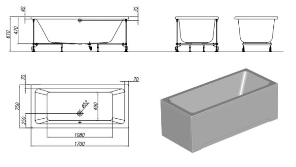 1) Ванна акриловая встраиваемая прямоугольная Kolpa-San Elektra 170x75 см белый
