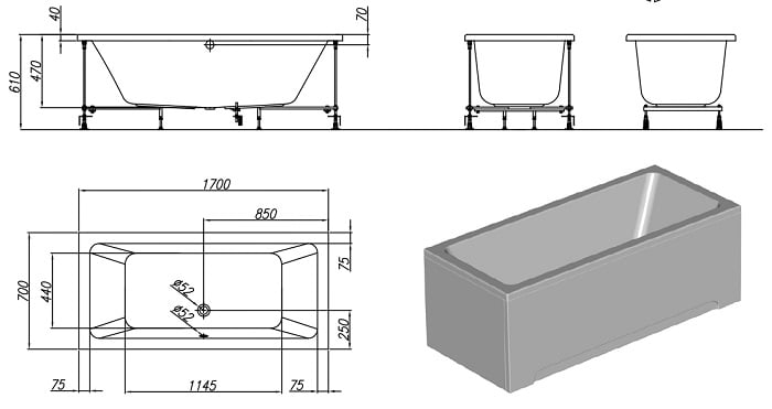 KolpaSan Elektra 170x70 - вместительная акриловая ванна прямоугольной формы, которая обладает невероятным внешним видом, не смотря на простоту исполнения. Ванна имеет классические формы, что свидетельствуют о хорошем вкусе и чувстве стиля ее обладателя, к тому же, мы знаем, что классика всегда в моде. Благодаря большим размерам и объему емкости в 200 литров, становится реальной возможность принятия водных процедур вдвоем. Ванна KolpaSan Elektra 170x70 сделана из высококачественного акрила, который не теряет свою привлекательность в течении многих лет и отвечает всем стандартам европейского качества. Ванна не только очень красива, но и удобна в повседневной эксплуатации, а также очень проста и удобна при установке. При желании ванна может быть дополнена различными сопутствующими элементами, такими как врезные смесители, подголовники или шторки. Для любителей гидромассажа есть великолепная возможность установки гидромассажной системы. Кстати, гарантия на все ванны от словенского производителя KolpaSan составляет 10 лет!