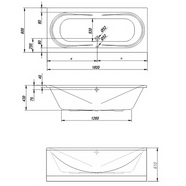 1) Ванна акриловая встраиваемая прямоугольная Kolpa-San Carmen 180х80 см белый