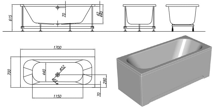 Kolpa San Destiny 170x70 - удобная ванна, материал акрил, форма ванны прямоугольная, красивый дизайн надежная и практичная в использования, модель 2015 года. Легко вписывается в просторную комнату, легко с помощью специального инструмента, возможно, врезать смеситель и гидромассажную систему. Ванны Колпасан Дестини 170х70 легко и просто установить в большую и просторную ванну комнату. Классический дизайн ванны, комфортное внутренне пространство. Легко и удобно можно принять ванну и расслабится после напряженного рабочего дня. Ванна устанавливается на специальную опору или каркас, все зависит от способа монтажа. Каркас и ножки регулируются по высоте, что позволяет легко и просто установить ванну.