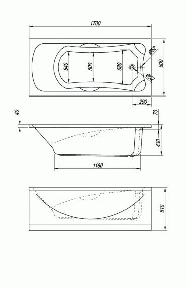 1) Ванна акриловая встраиваемая прямоугольная Kolpa-San Valis 170х80 см белый