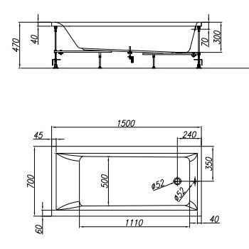 1) Ванна акриловая встраиваемая прямоугольная Kolpa-San Figaro 150x70 см белый