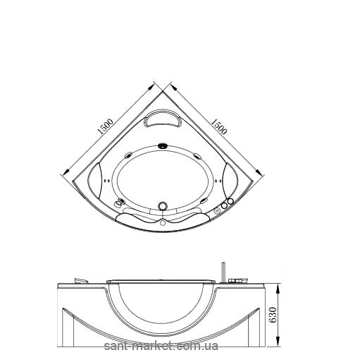 Ванна с гидро и аэромассажем акриловая угловая Volle 150х150х63 12-88-103a