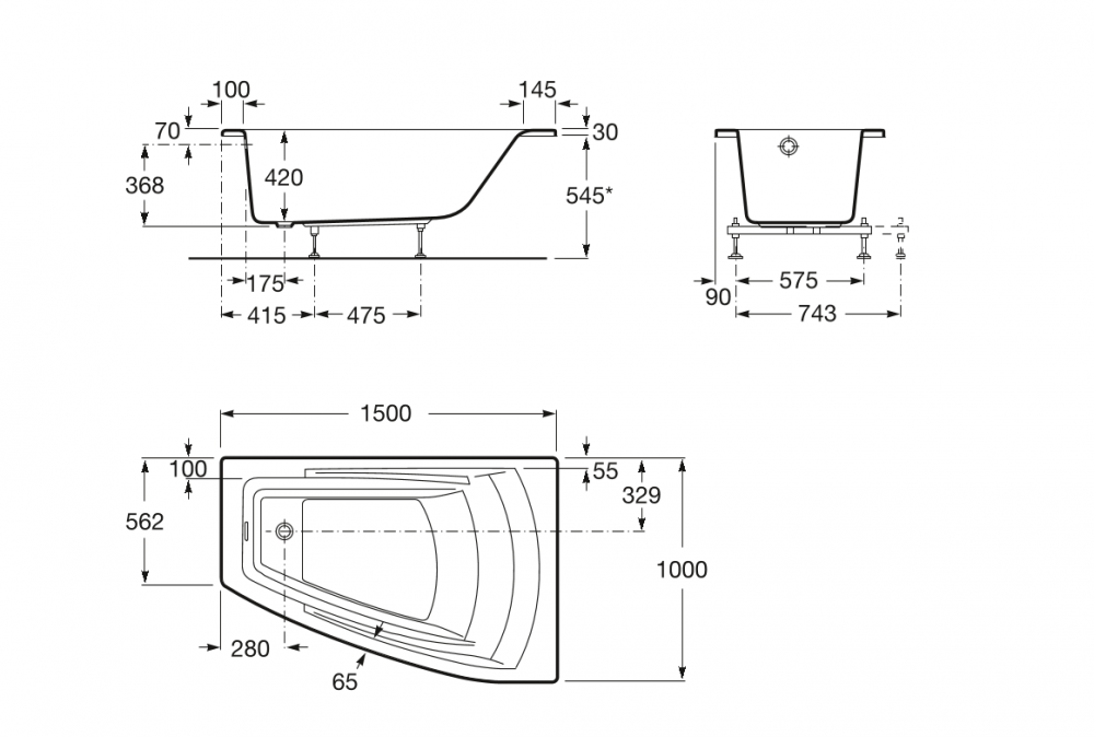 Угловая акриловая ванна Roca Hall 150x100 правая с гидромассажем Smart Air Plus + подголовник + сифон A24T406000