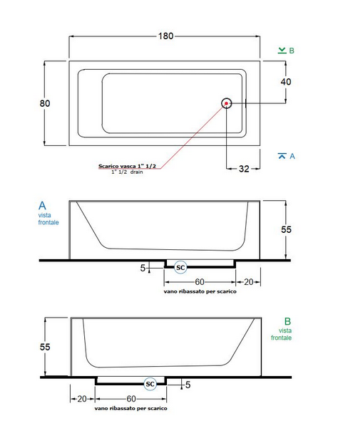 1) Ванна из искусственного камня Gruppo Treesse Summertime 180х80 см белый матовый