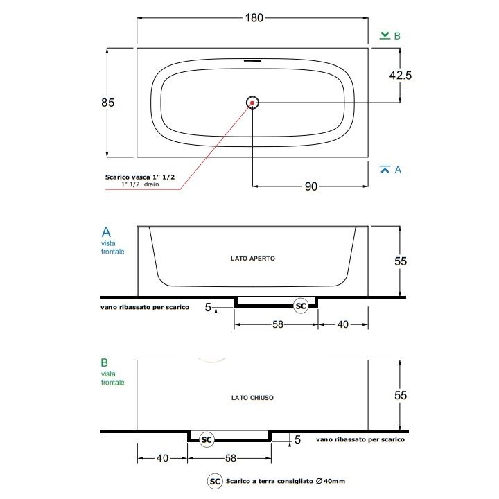 1) Ванна из искусственного камня Gruppo Treesse Summertime 180х85 см белый матовый