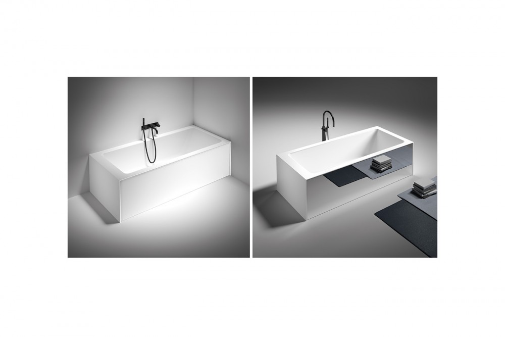 Ванны с прочным покрытием и неповторимым чистым стилем, способны элегантно и креативно сочетаться с самыми различными стилистическими решениями и предполагают различные варианты установки: отдельностоящие угловые, нишевые и пристенные. Особенностью этой ванны является возможность добавления панелей, которые могут иметь различные отделки для создания.
