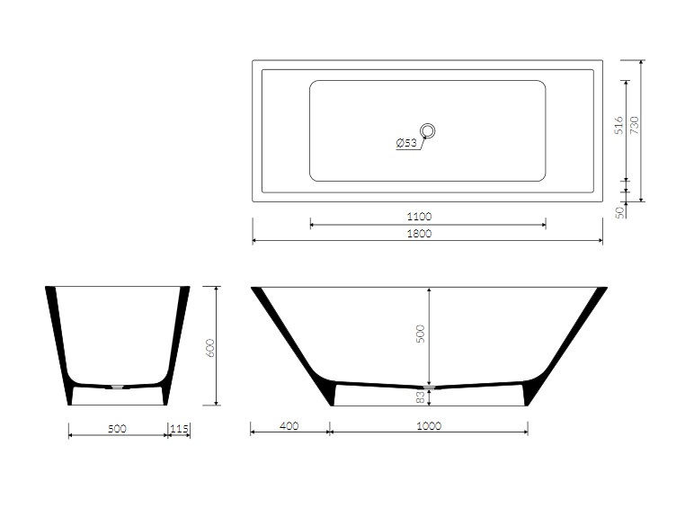 1) Ванна из искусственного камня Marmorin Tebe III 180х73 см отдельностоящая белый