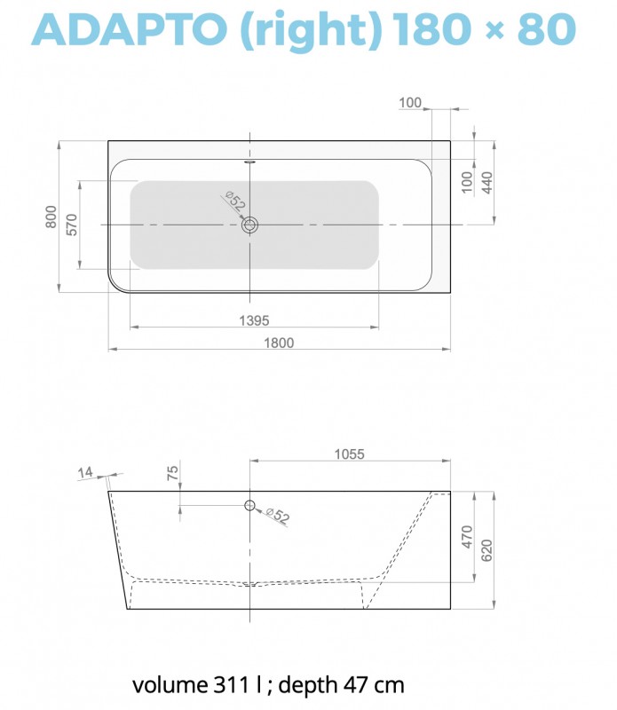 Ванна PoolSpa Adapto 180x80 см изготовлена из композитного материала, отличающегося устойчивостью к царапинам и ударной прочностью. Ванна имет прямоугольную асимметрическую форму с закругленными углами.