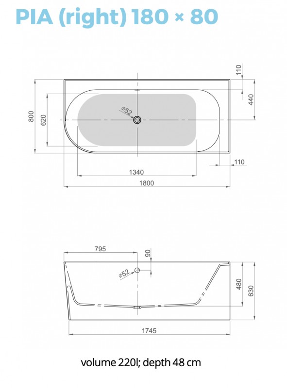 Ванна из искусственного камня PoolSpa Pia 180x80 см асимметричная R правая с ножками и сифоном белый PWKCR10PPSC0000