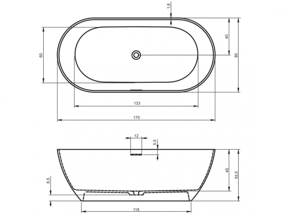 1) Ванна из искусственного камня Riho Bilbao 170х80 см белый матовый