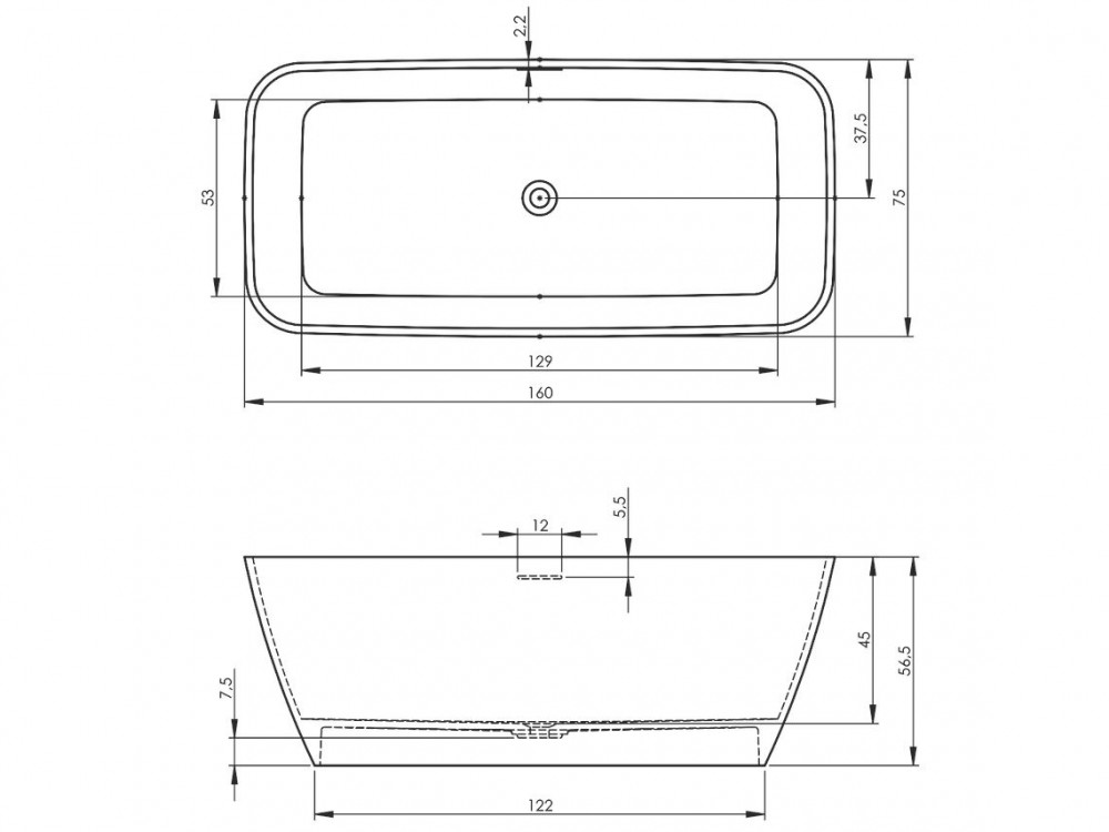 1) Ванна из искусственного камня Riho Malaga 160х75 см белый матовый