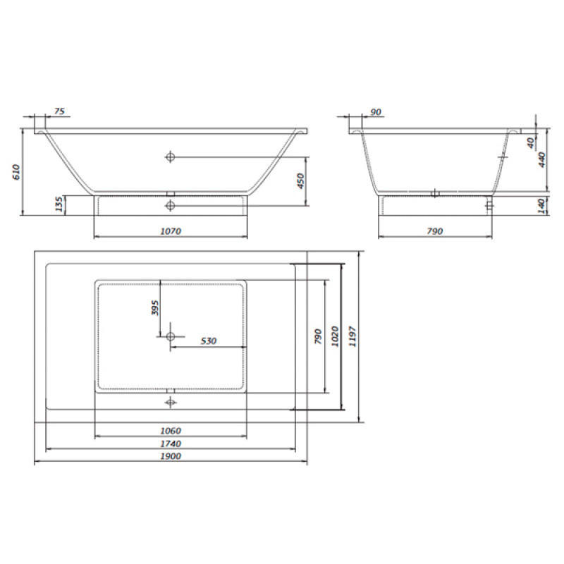 1) Ванна из искусственного камня Rock Design Классика XXL 190x120