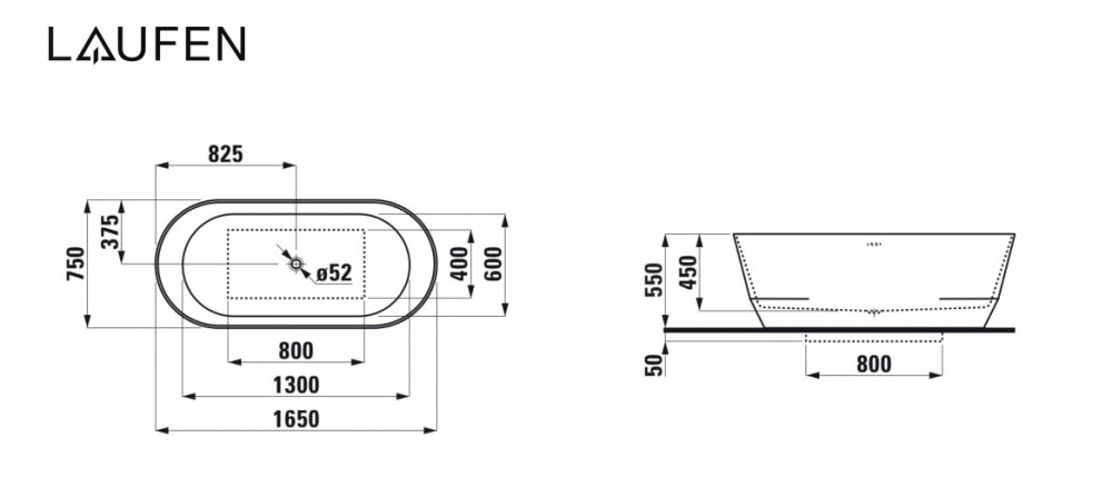Ванна Laufen Pro 165х75 см искусственный камень Marbond белый H2399520000001