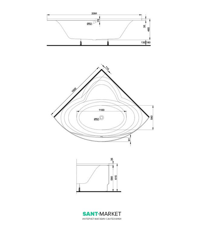 Ванна гидромассажная акриловая угловая Kolo Relax 150х150х47 белая