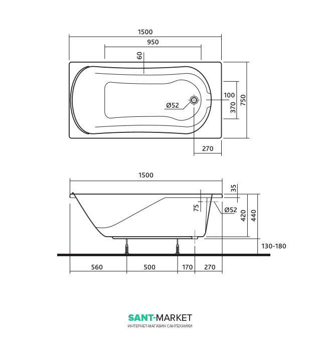 Ванна с гидро и аэромассажем акриловая Kolo Comfort 150х75х44 001100