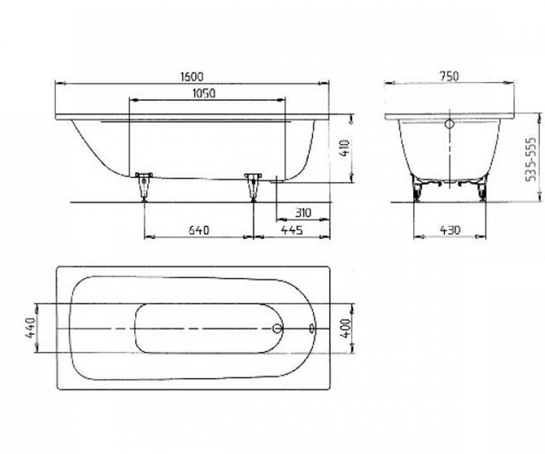 1) Ванна стальная Kaldewei Saniform Plus 160х75 см 3,5 мм 177 л белый