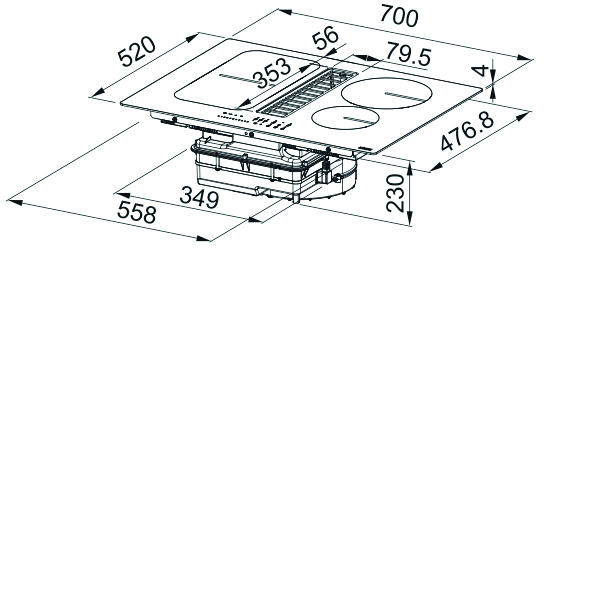 - две прямоугольные Flexi зоны 210х190 мм с возможностью объединения благодаря функции Bridge. Мощность 2100 Вт, 3000 Вт в режиме Booster