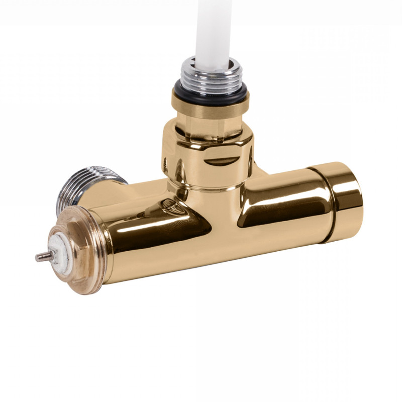 Вентиль Terma Cylinder интегрированный термостатический угловой с трубкой правый металл золотой TGZTZL002