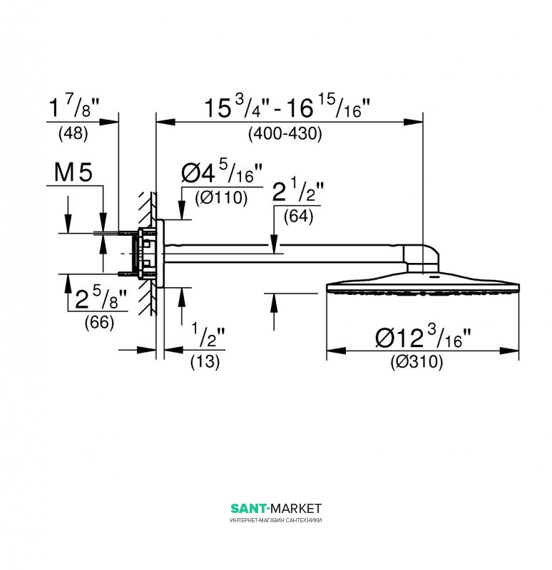 Превосходный выбор: верхний душ с 2 режимами струи и душевым кронштейном в комплекте