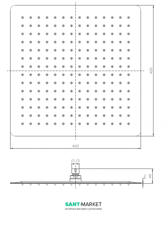 размеры душевой головки 400x400 мм