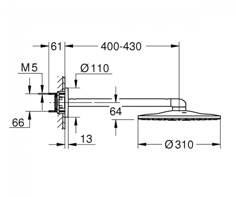 Верхний душ Grohe Rainshower 310 SmartActive с кронштейном холодный рассвет глянец 26475GL0