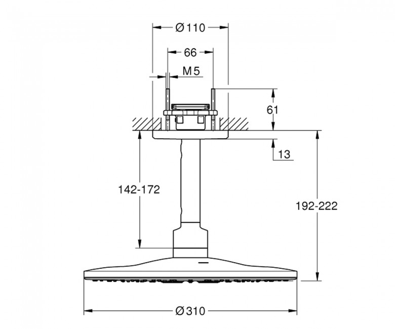 Верхний душ Grohe Rainshower 310 SmartActive с потолочным держателем темный графит матовый