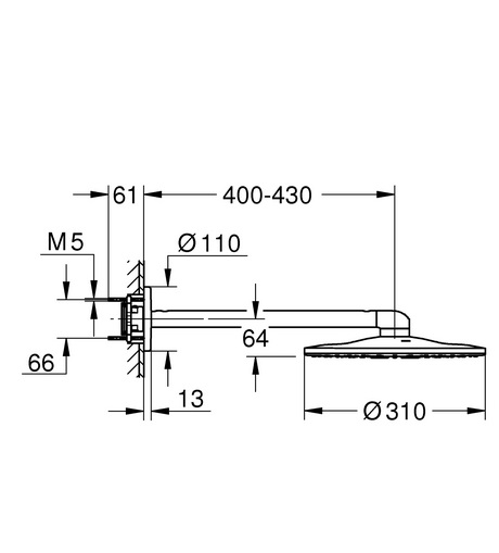 Верхний душ Grohe Rainshower 310 SmartActive с кронштейном 2 режима фантомный черный 22123KF0