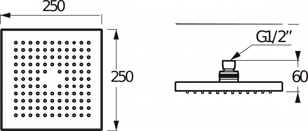 1) Верхний душ Jika Cubito 250х250 мм с кронштейном хром