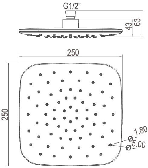 Верхний душ Ravak 983.10 ABS 25 см, квадратный (X07P347) изготовлен из пластика, цвет белый. Душ с функцией Air – подсос воздуха.