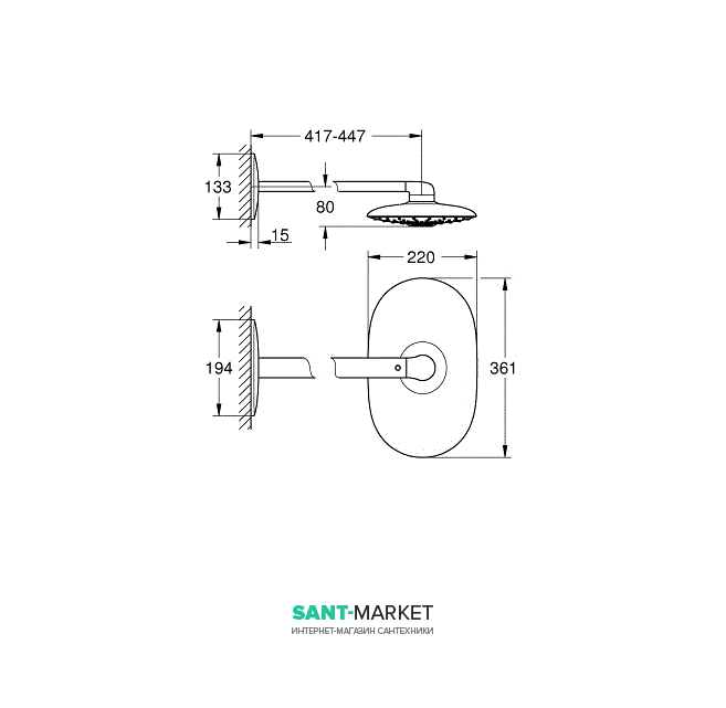 Верхний душ с кронштейном Grohe Rainshower 360 Duo Head shower set 450 mm 26254LS0