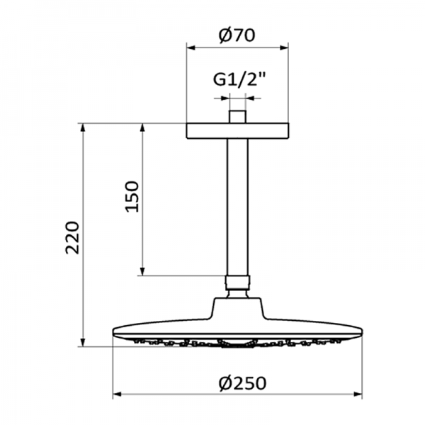 1) Верхний душ с потолка GRB Hidromasaje Snow с кронштейном хром
