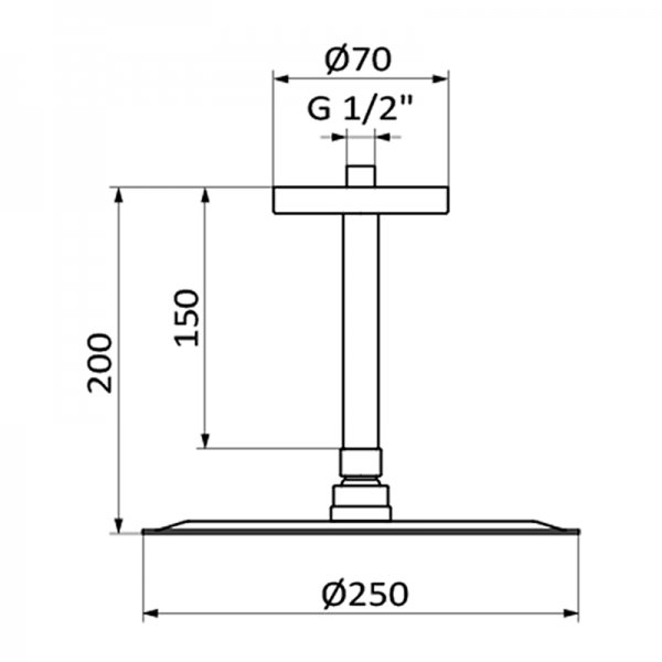 1) Верхний душ с потолка GRB Hidromasaje Slim с кронштейном хром