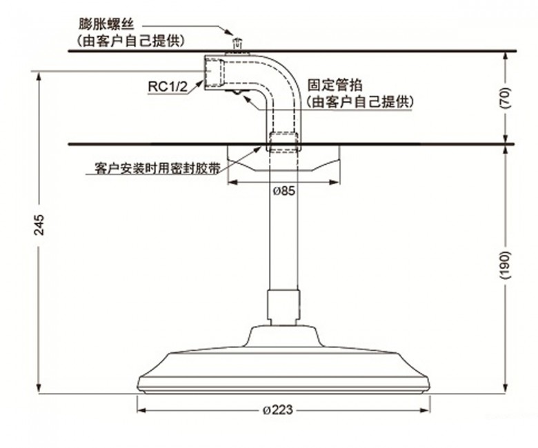 Верхний душ с потолка TOTO Classic круглый хром DBX120-1CAM