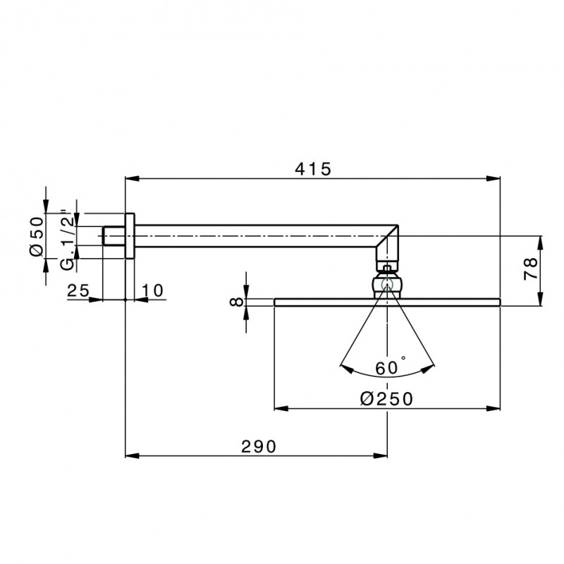 Верхний душ со стены Devit ART с кронштейном латунь черный матовый 15014140B