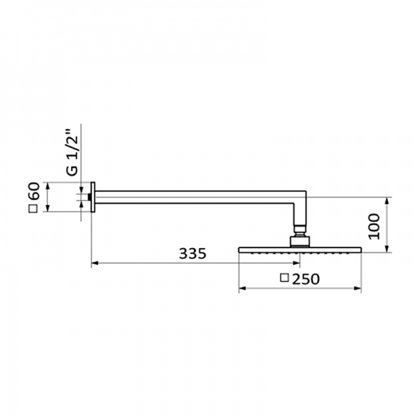 1) Верхний душ со стены GRB Hidromasaje Square с кронштейном хром