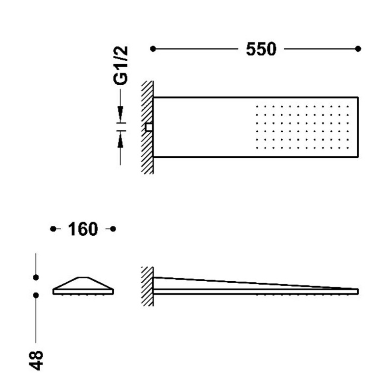 Верхний душ со стены Tres 160х550 мм нержавеющая сталь матовое розовое золото 29990303OPM
