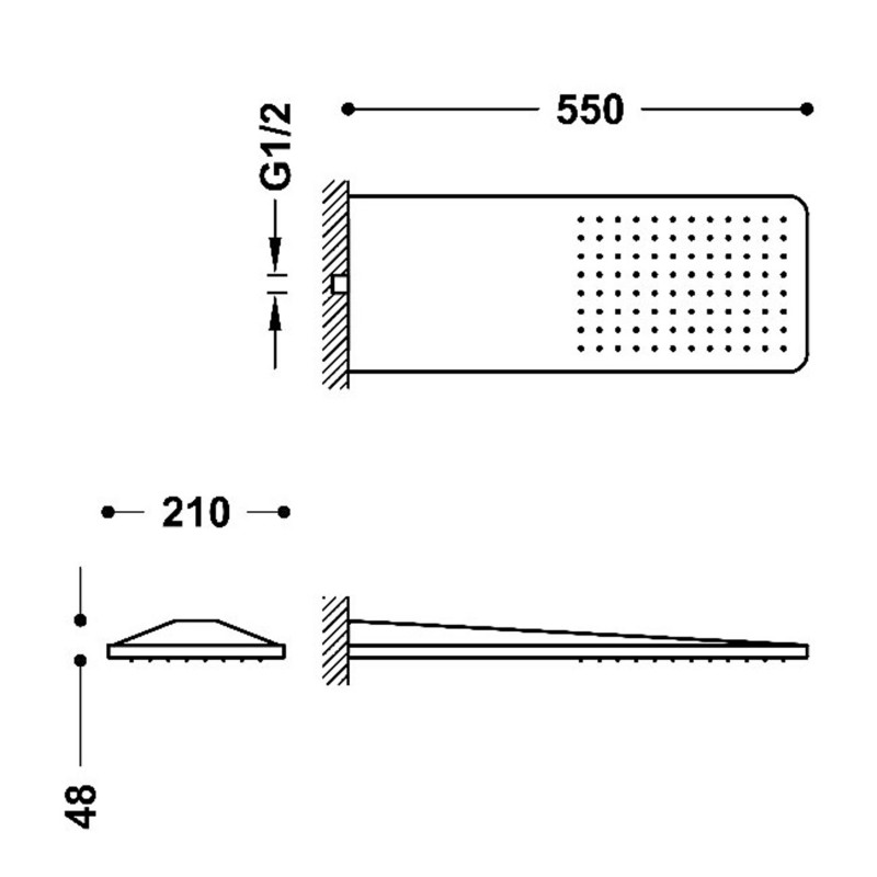 Верхний душ со стены Tres 210х550 мм нержавеющая сталь черная бронза