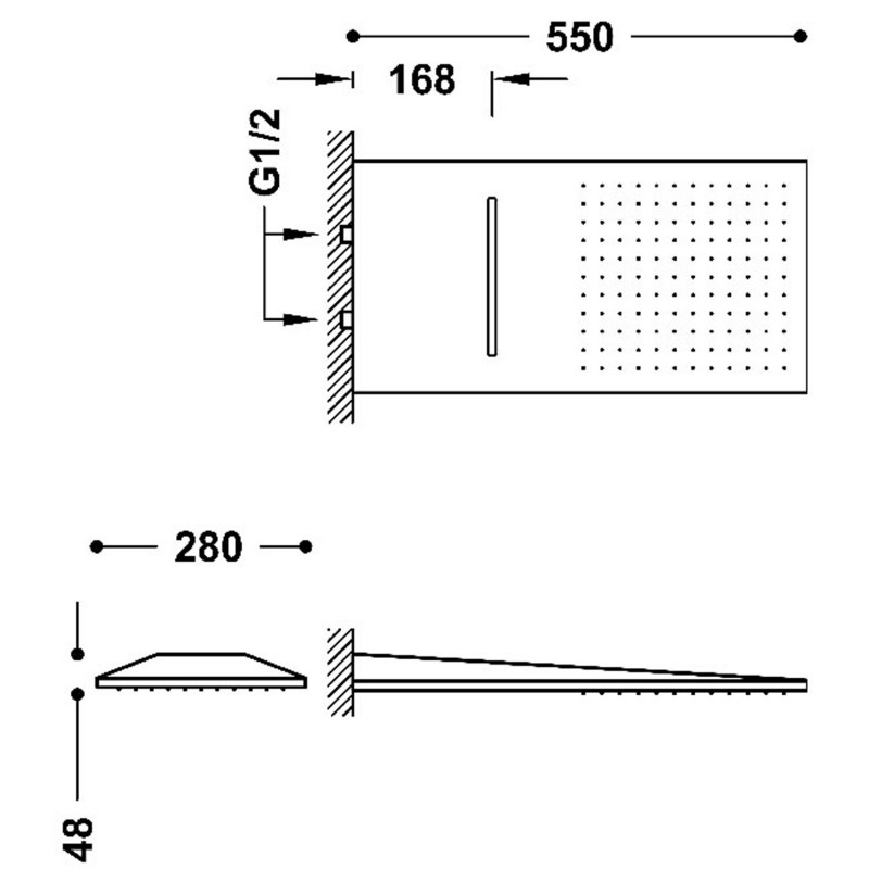 Верхний душ со стены Tres 280х550 мм нержавеющая сталь матовое золото