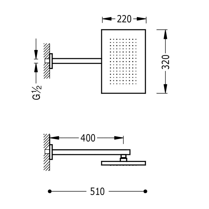 Верхний душ со стены Tres 320х220 мм с кронштейном хром