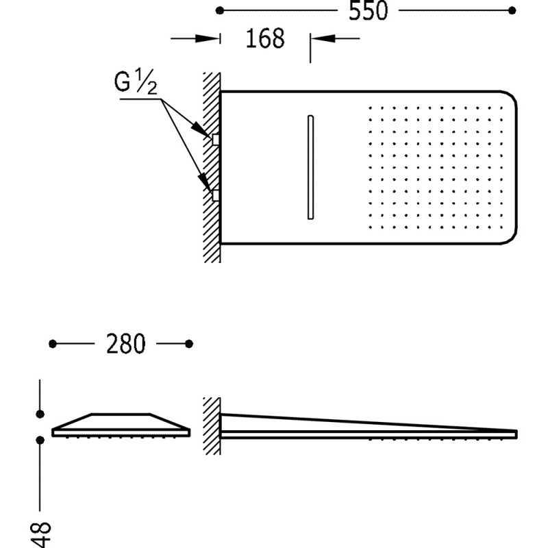 Верхний душ со стены Tres Inox 280х550 мм 2 типа струи черный матовый