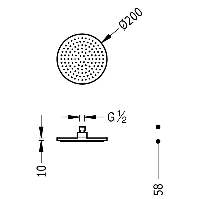 1) Верхний душ Tres Ø 200 мм с шарниром хром