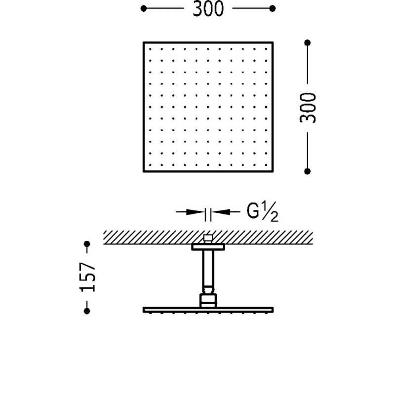 Верхний душ Tres Exclusive 300х300 мм с кронштейном хром