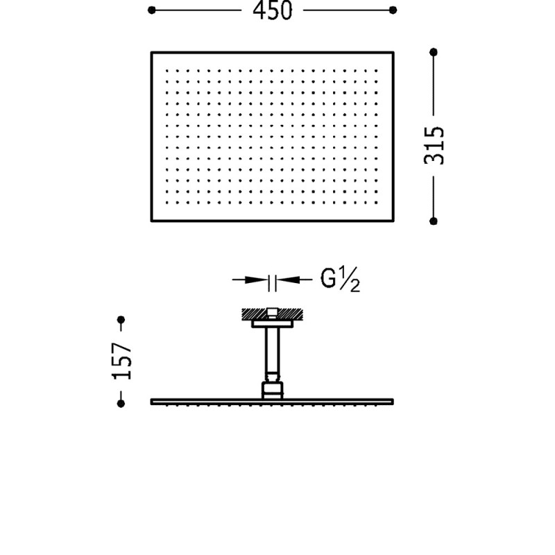 Верхний душ Tres Exclusive 450х315 мм с кронштейном хром 03443203