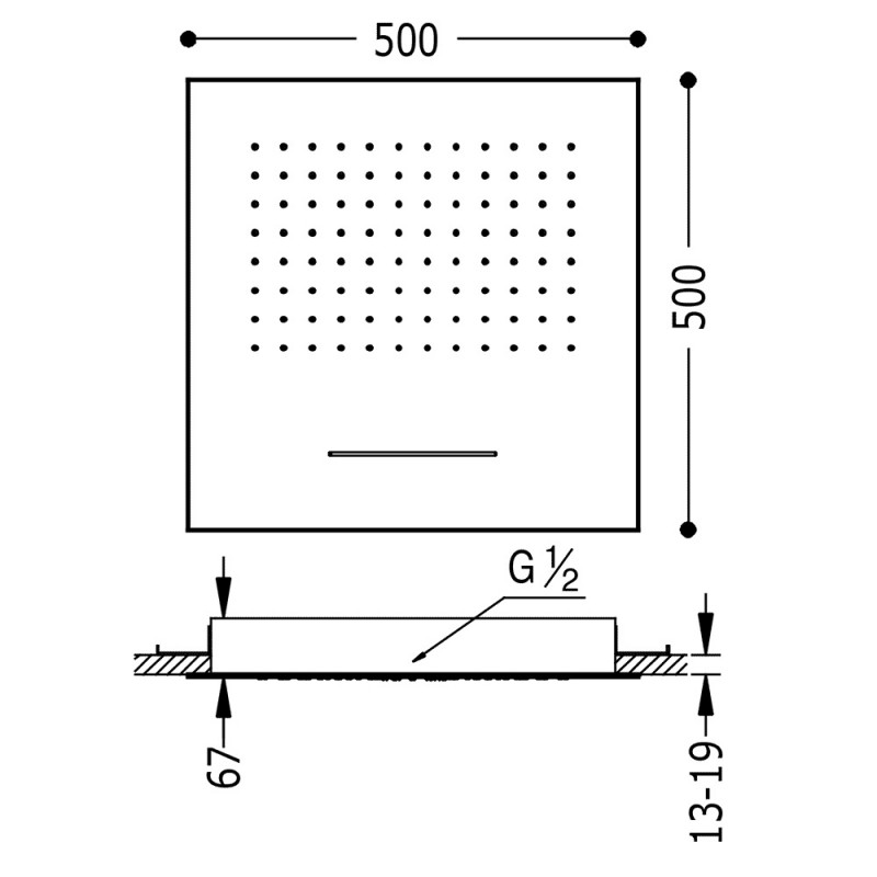 Верхний душ Tres Inox 500х500 мм 2 типа струи хром