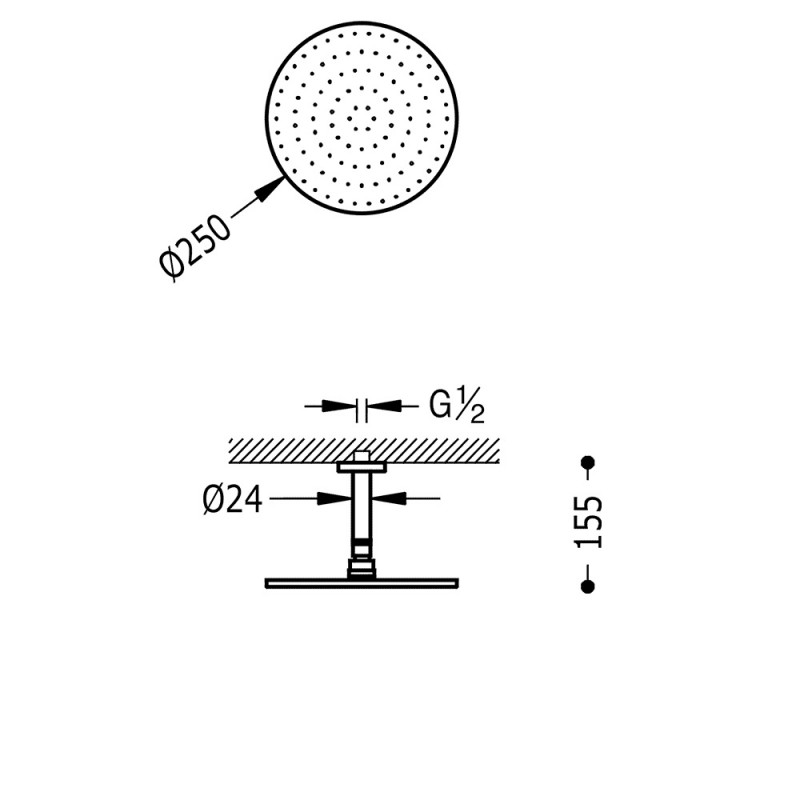 Верхний душ Tres Showers Ø 250 мм с кронштейном хром 134221