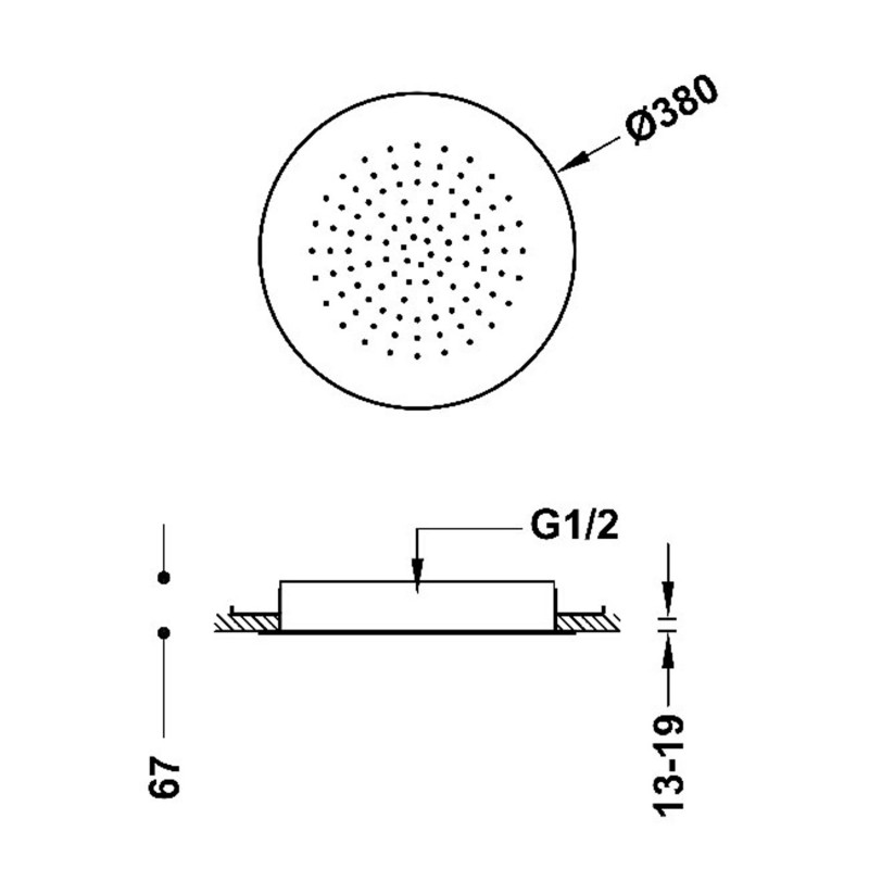 Верхний душ Tres встраиваемый Ø 380 мм нержавеющая сталь металлик черный
