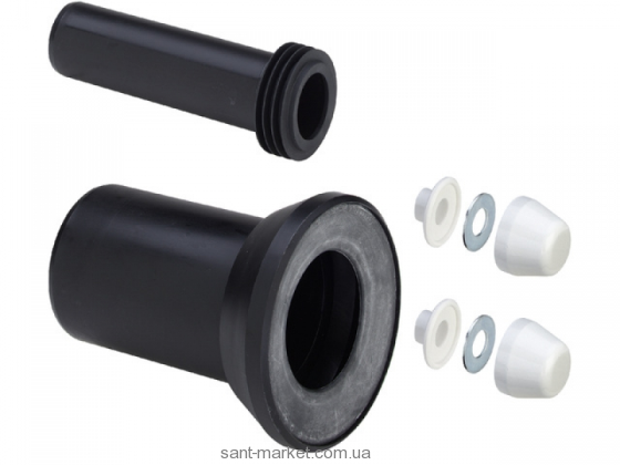 смывная труба с соединительным патрубком 45x230 мм, соединительный патрубок для унитаза с манжетным уплотнением, монтажный комплект (защитные колпачки белые)